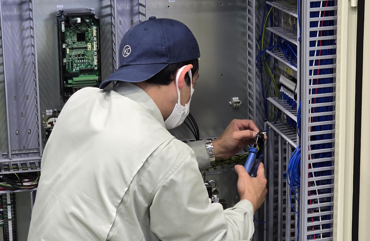 私たちは、お客様のニーズに応じた多種多様な制御盤を製作し、ハード・ソフトの設計から機体配線、試運転調整、現地調整まで対応できます。