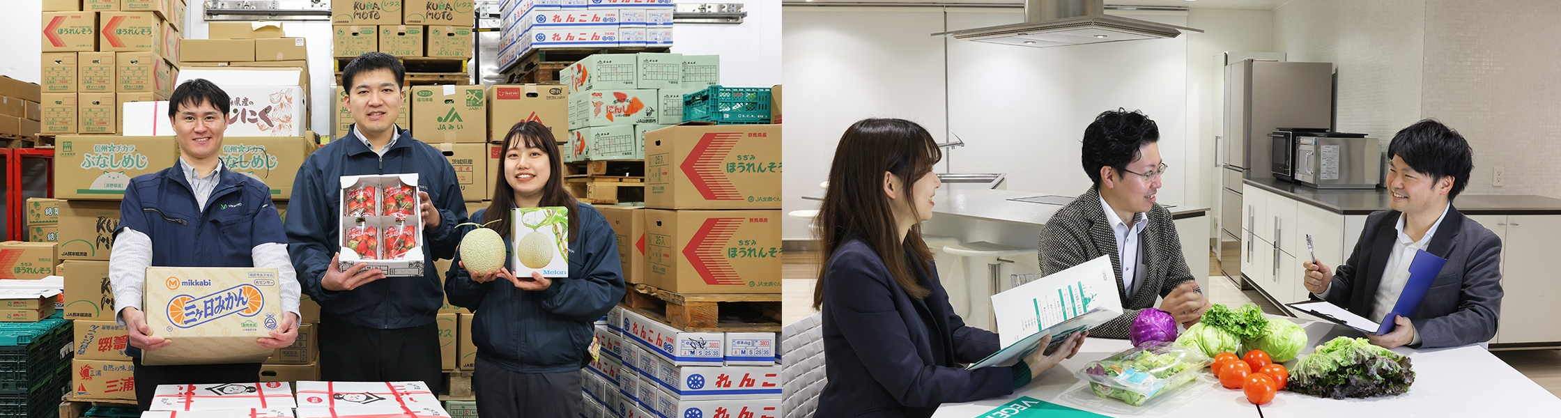 販売者様、消費者様には、安心・安全で高品質な野菜・果物を通じて、「健康」と「満足」へ貢献します。