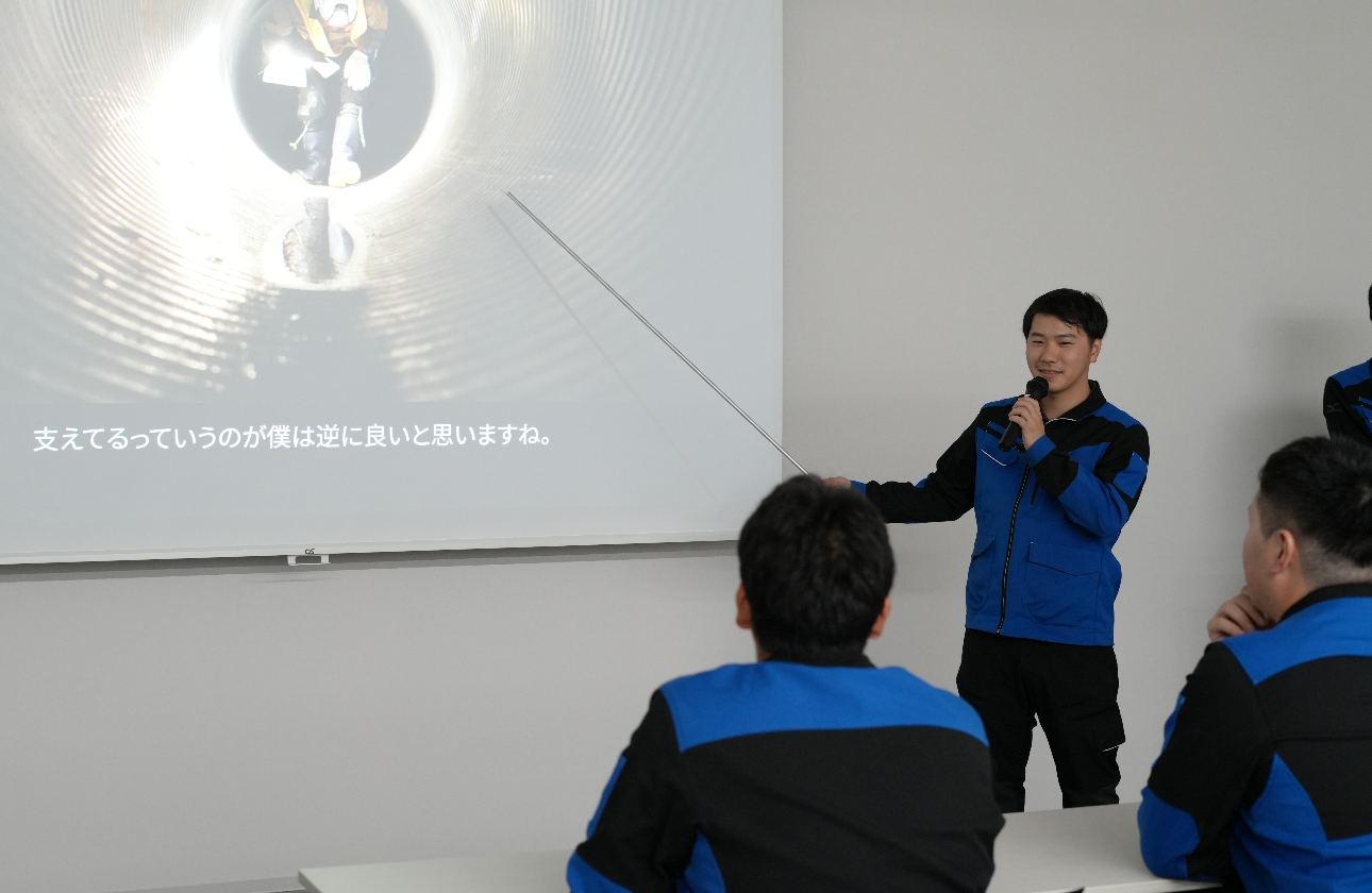 下水道工事の工法のフルモデルチェンジを考えてもらったり、工事に必要な「製管機」という機械を設計したり、積算をしたりします。