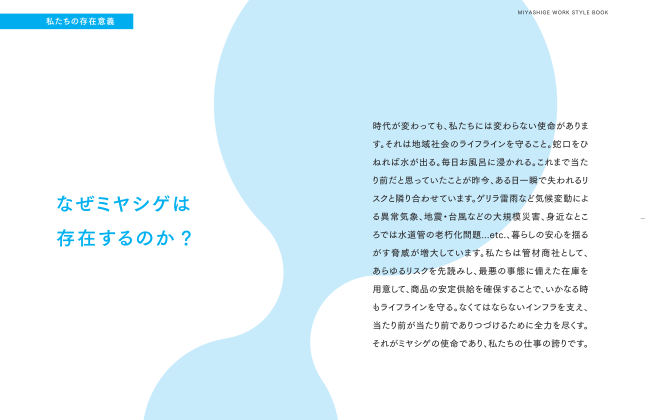 当社は富山県射水市に本社拠点を置く水道資材の専門商社です。商品はパイプや継手などの管材と呼ばれるもので、建物や道路の中に隠れています。普段直接目に触れることは少ないですが、生活に欠かせない『水』『空気』といったライフラインを支えています。その他、住宅設備、消雪管システムなどの取り扱いも行っており、北陸の業界では当社の名前を知らないところはないトップクラスの会社と自負しています。