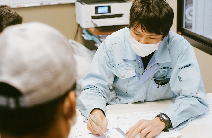| 働く環境 | 整えるのは、土壌だけではありません。働く環境もしっかり整えています。 全国各地で工事の依頼を受ける当社では、よりよい環境で業務に取り組めるような設備・環境や福利厚生づくりに努めています。 新入社員として入社する皆さんにはしっかりとOJTでサポートしていくのでご安心ください。 残業(所定外労働時間)は全社月平均11hです。 年次有給休暇取得率71%。会社としても有給の取得目標を70%以上を目標とし、ゆくゆくは有給の取得80%を目指す方針です。 平均勤続年数13.3年と高い定着率 資格取得のためのサポートも充実 |