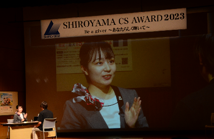 毎年全社員が集まって、一年の振り返りや来期に向けてのビジョンを共有します。また、功績や貢献のあった社員に対して表彰されるシーンがあります。これがその時の写真です。大きな拍手と歓声で大変盛り上がります!