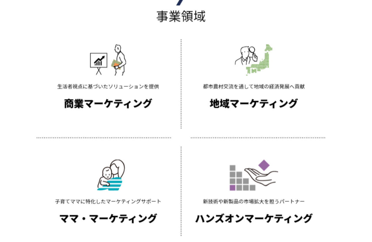 マインドシェアは4つの事業を軸としたコミュニケーションマーケティングを行い、さまざまなソリューションを提供しています。