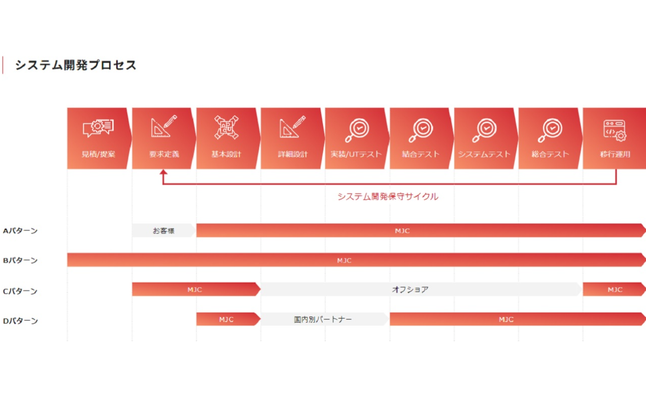| 事業内容 | ■SOLUTION SERVICE(ソリューションサービス)/「ICT技術で命をまもる」を理念に地方自治体、各種外郭団体様向けにそれぞれの持つ課題・要求を踏まえた情報システムの開発、運用を手掛けています。 ■PROFESSIONAL SERVICE(プロフェッショナルサービス)/MJCの豊富な実績から培われた専門性、提案力、技術力を生かし幅広い業界に向けてシステム開発をしています。 ■PROJECT SERVICE(プロジェクトサービス)/九州の豊かな開発ロケーションにおいてコンサルから開発・運用・保守まで全国トップレベルのプロジェクトサービスを提供しています。 |