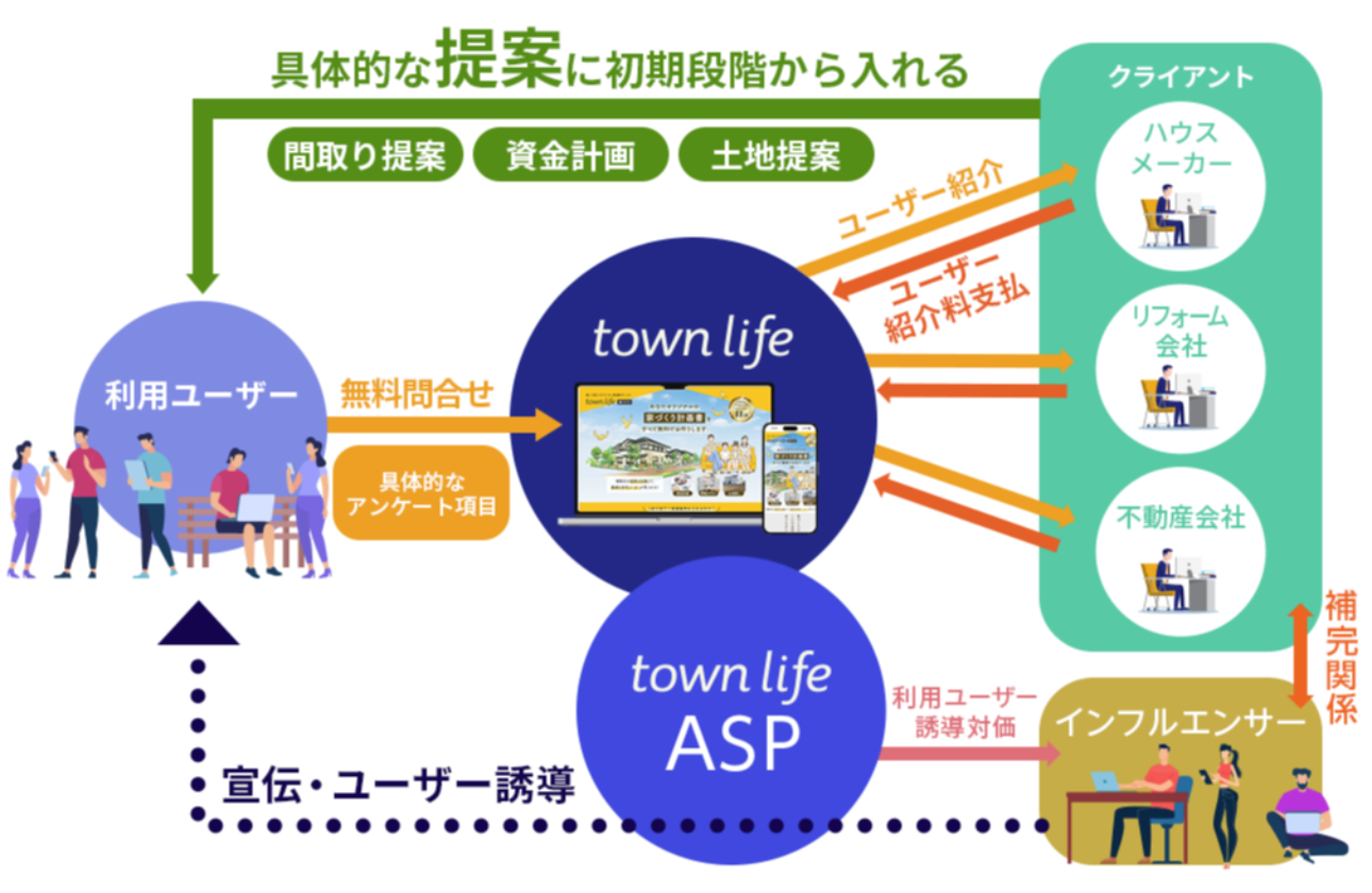 関わった会社や人が幸せになり、利益を共有できるのが「townlife」のビジネスモデル。