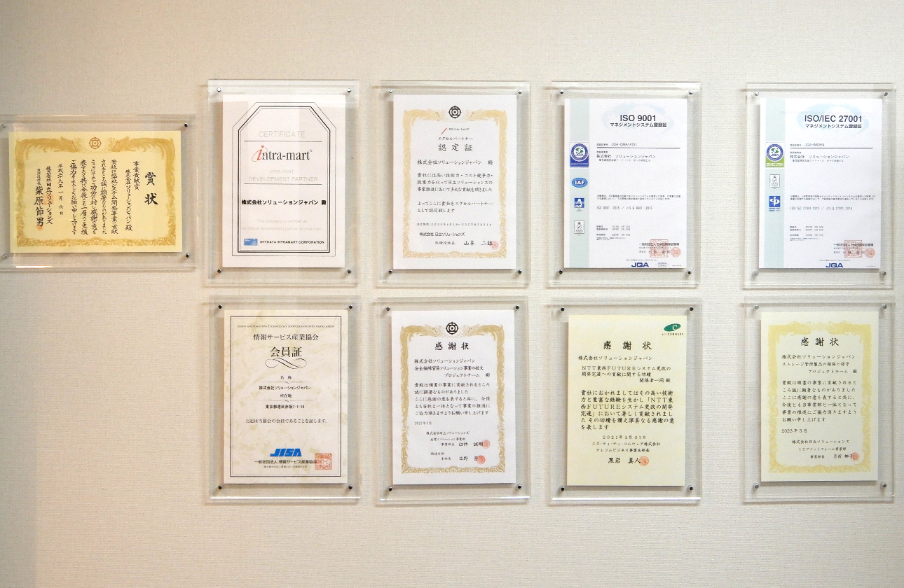 日立グループ、NTTグループ等から感謝状をいただいており、高い技術力 を顧客に認められています。