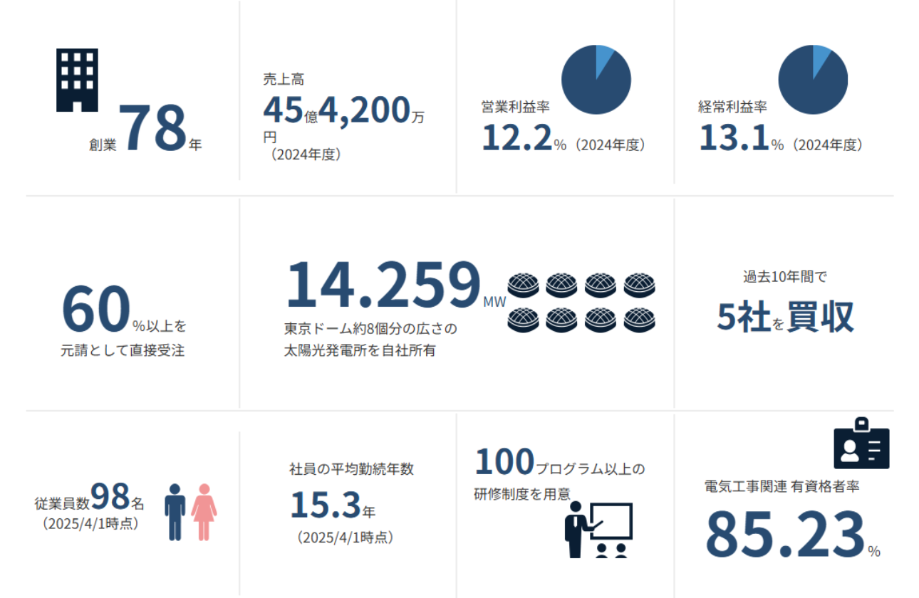 | 事業内容 | 電気設備工事業、その他6つの事業を展開 |