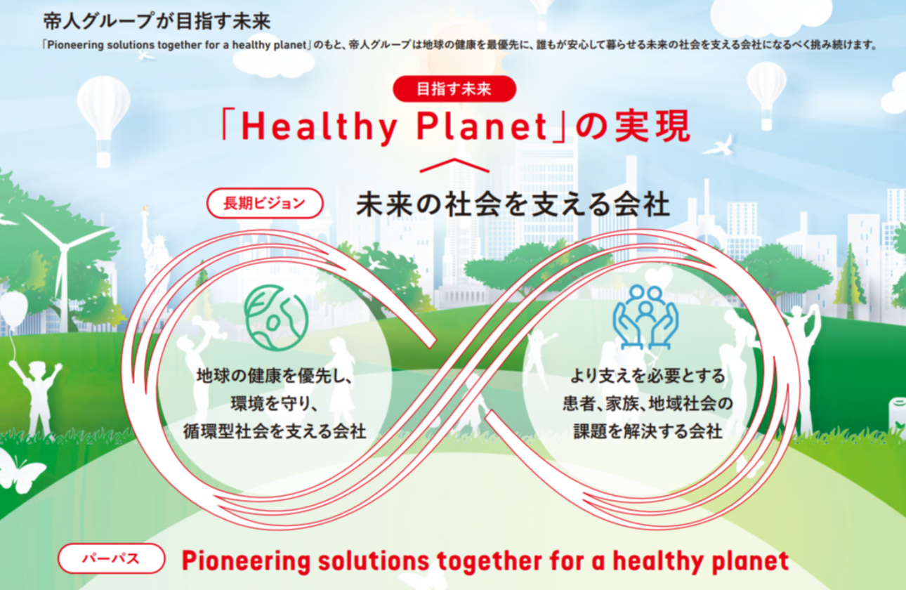 帝人グループは地球の健康を最優先に、誰もが安心して暮らせる未来の社会を支える会社になるべく挑み続けます。