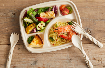 一例として、植物由来や紙素材など環境に優しい容器の開発・拡販を進めており、最も力を入れているバガス製品は2021年、エコ部門で3冠受賞を達成しました。