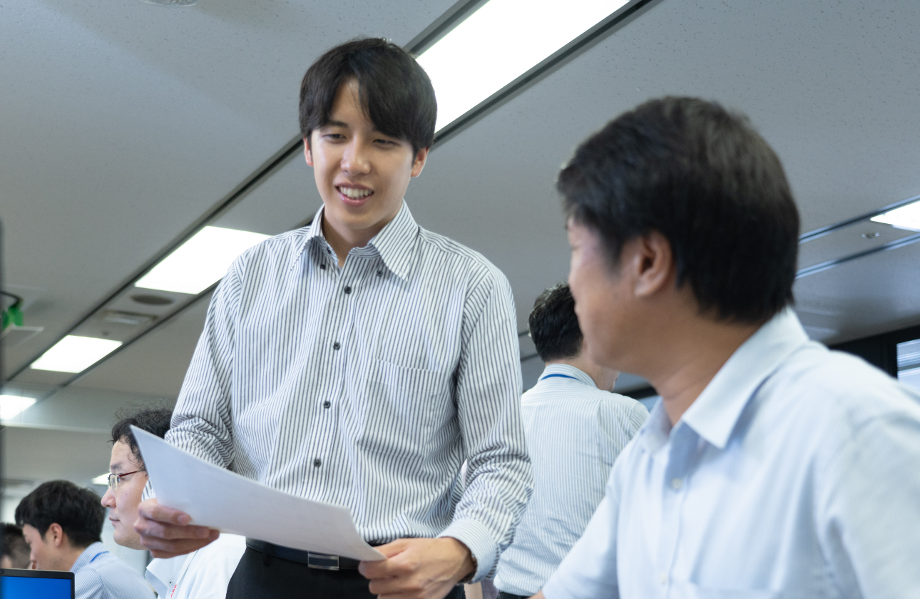 変化の激しい時代において、当社は「Challenge & Chance!」をモットーに挑戦をし続けています。それは、社員一人ひとりの仕事においても、同様。年齢や社歴にかかわらず、新しいことやハイレベルな業務を任せる社風です。当社では、若手でも挑戦できる機会を提供し、活躍できるステージを積極的に作っています。また、挑戦させるための教育も充実させ、着実に成長していけるよう先輩社員や上司がしっかりとサポート。各部署や社内の人間関係が良好なため、コミュニケーションをとりながら仕事を進めやすい環境です。社員同士やチーム間で情報の共有や連携も取れているため、思い切ってチャレンジでき、ステップアップできます。