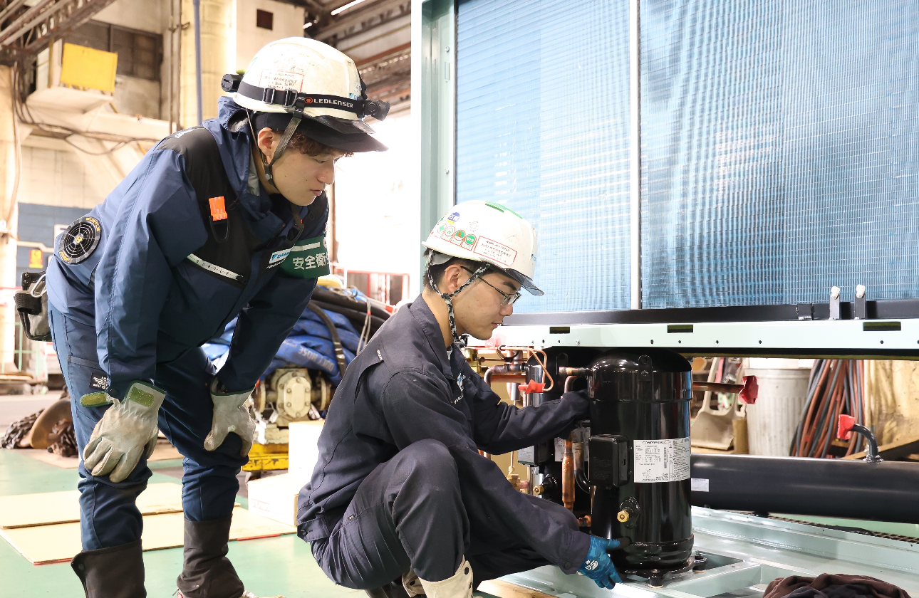 資格取得(冷凍機械責任者、冷媒フロン類取扱技術者など)も可能です。