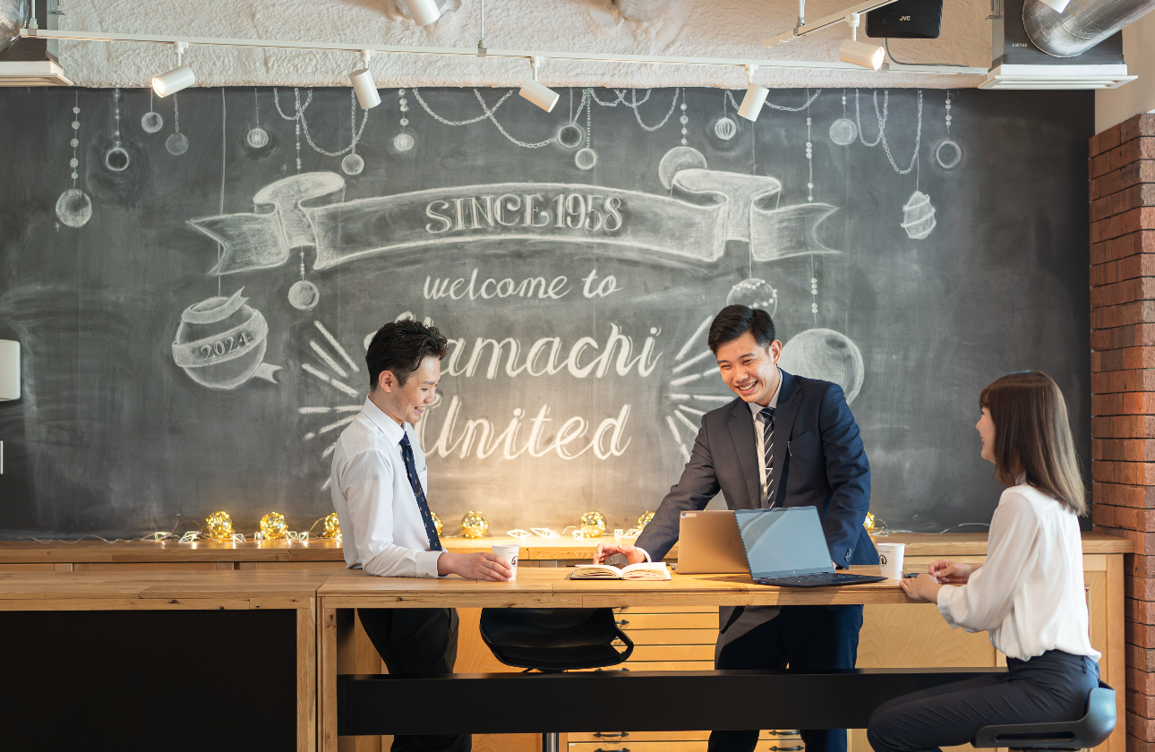 ヤマチユナイテッドが展開する事業に携わるお客様はもちろんですが、社員も幸せで豊かなものになってほしい、そんな想いがあります。