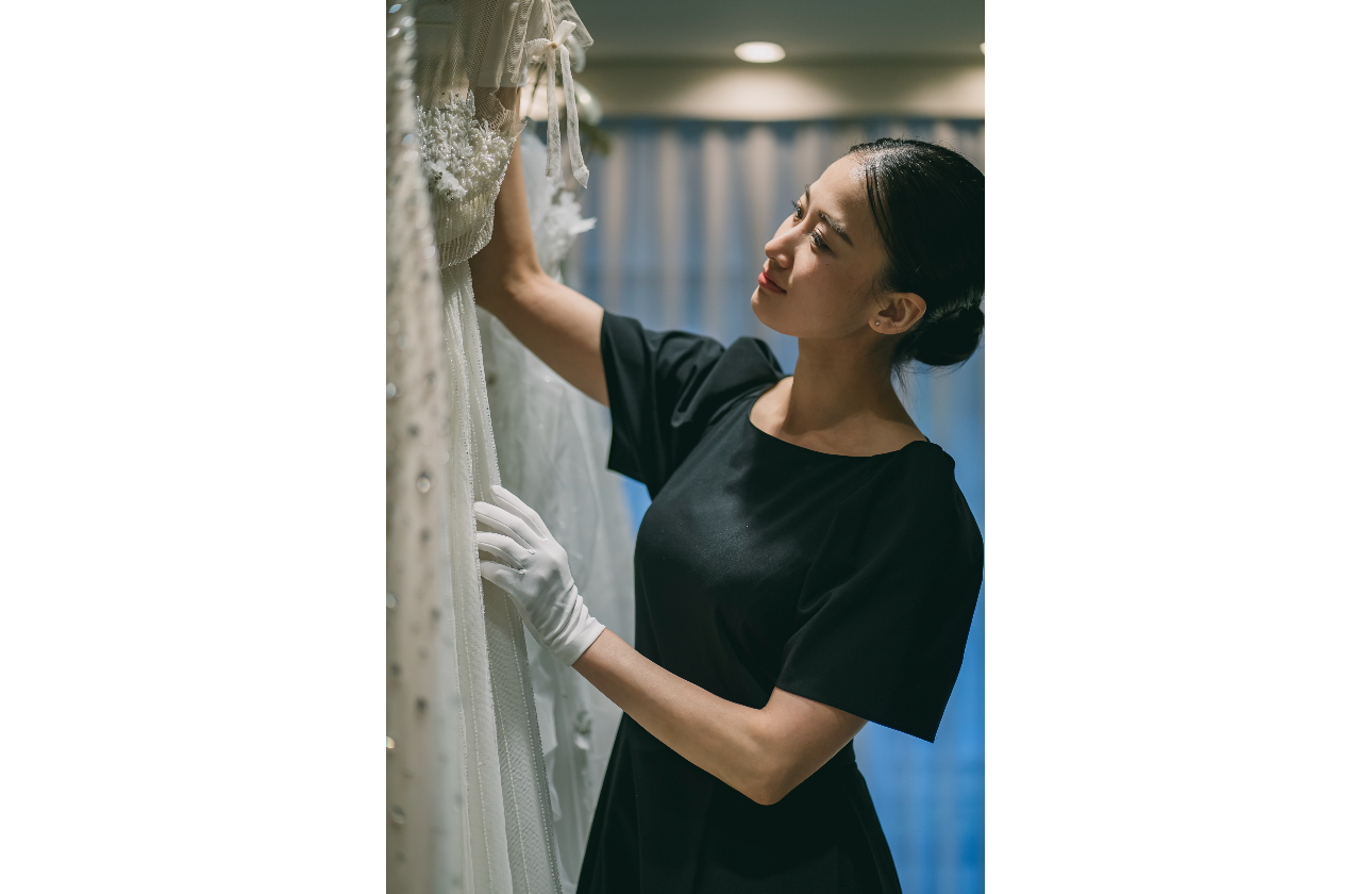 花嫁様に対する情熱を持ち、ウェディング本来のクラシカルな雰囲気を大切にしつつトレンドを取り入れた革新的なブライダルファッションを表現している点などが審査員から評価され、最優秀賞を受賞しました。