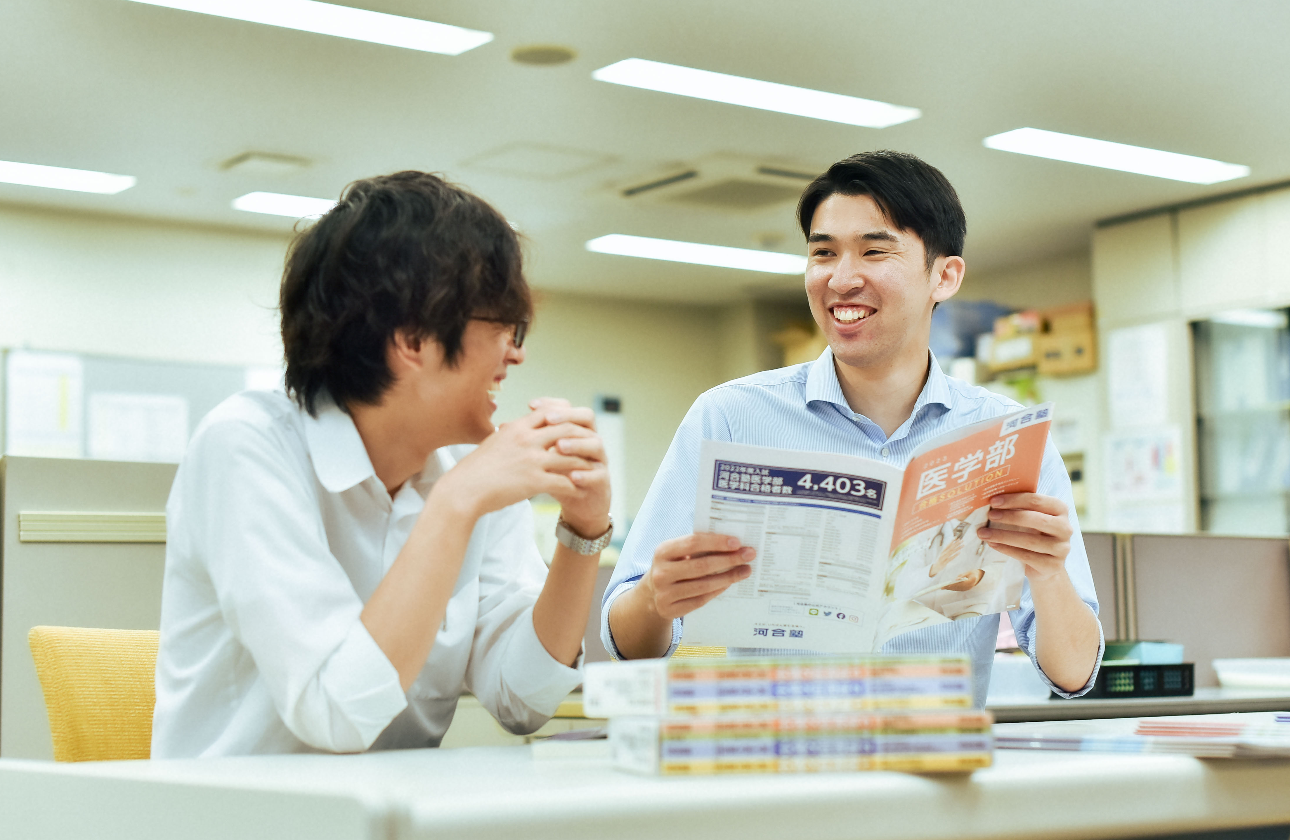 生徒一人ひとりにしっかり向き合うことを大切にしている私たちですが、生徒を大事にするように社員も大事にしたい、というのが河合塾進学研究社の考え方です。困ったことやわからない点についてもすぐに先輩社員に聞くことができるので一人で抱え込む必要はありません。