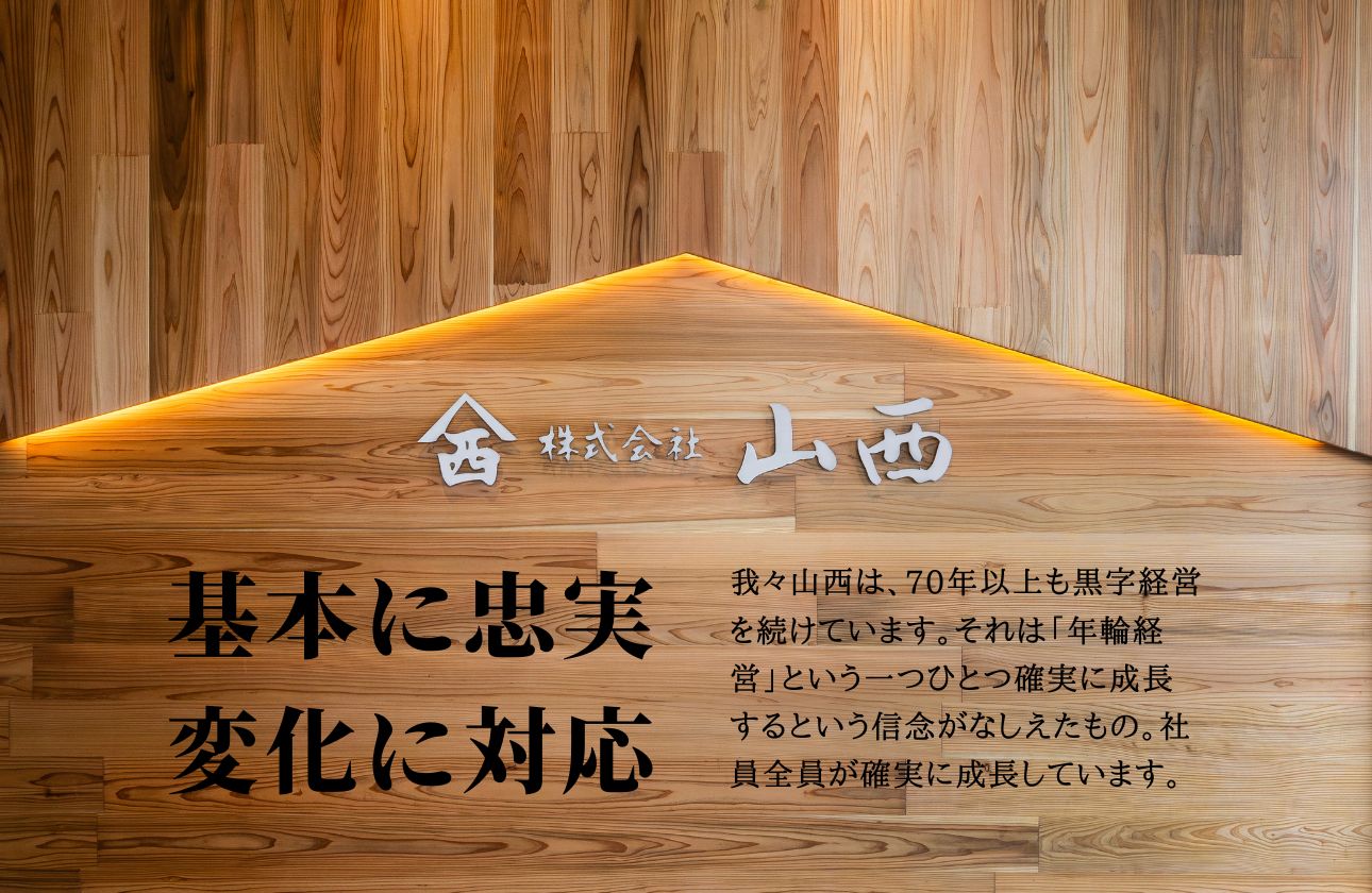 山西は創業から70年の間、常に変化をし続けてきました。当社の創業は戦後間もない1953年、復興の支えとなるべく木材を扱う「木材商社」として歩みをはじめました。最初は木材の原料となる原木を扱い、その後は”木材”の販売に着手。本社のある名古屋を中心に尾張・三河・岐阜・三重と店舗網を広げ、東海エリアトップクラスの木材・建材商社となりました。以降は多様化するニーズに応えるため、木造住宅構造材の設計・加工を行うプレカット事業をスタート。「商社」機能に加え「メーカー」機能も持つようになりました。