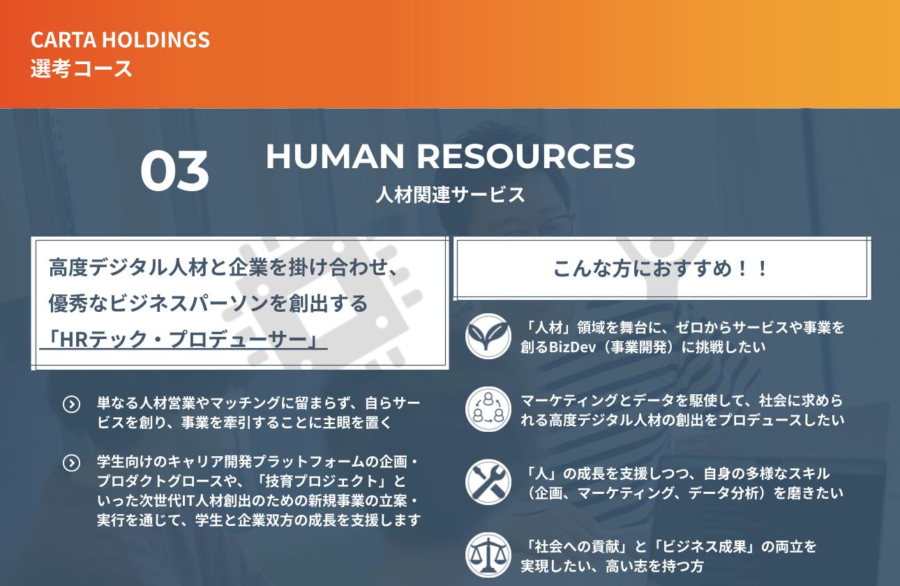 結果として、高度人材の創出という社会的意義にも直結する、HR事業の企画からグロースまでを担うキャリアコースです。