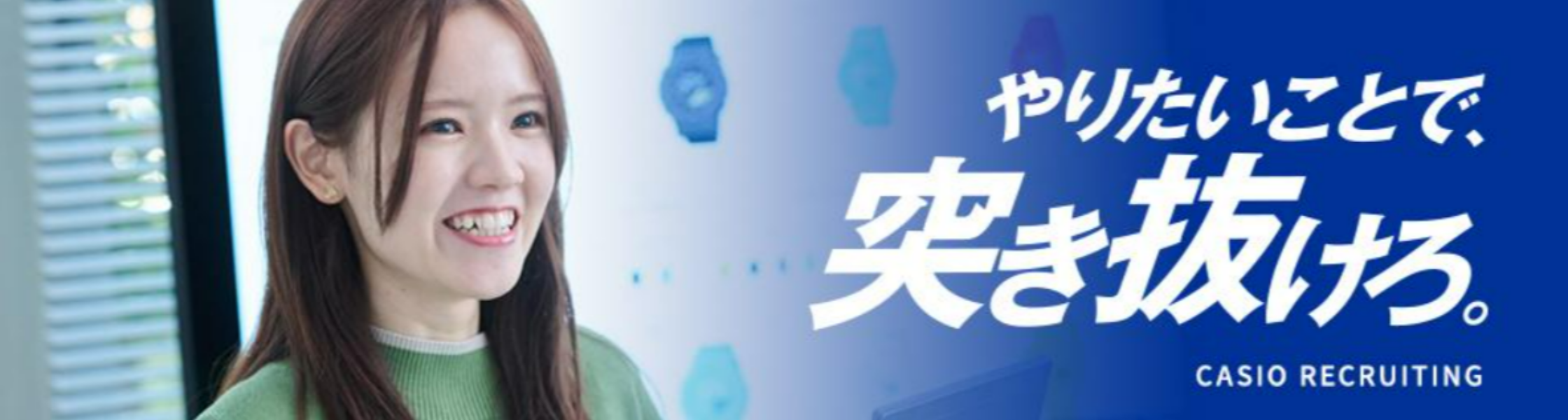 常識の枠にとらわれないチャレンジスピリットを尊重する風土、夢を実現する手段と環境、世界中に名を馳せているブランド、そんな「CASIO」という舞台に立つからこそできることがあります。「こういう製品ができたら世の中、便利になるのに」そんな想いをとことん追い求め、CASIOで次なる“世界初”に挑んでください。
