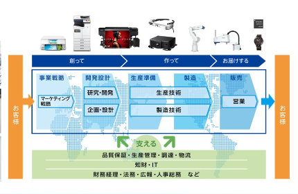 | 事業内容 | プリンター(オフィス・ホーム、商業・産業)、プロジェクター、産業用ロボット、ウオッチ、半導体、水晶等 |