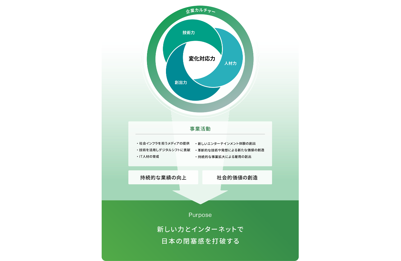 パーパスとして掲げる「新しい力とインターネットで、日本の閉塞感を打破する」会社として社会に貢献して参ります。
