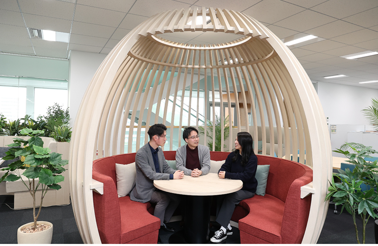 「つながり」「コミュニケーション」「多様な働き方」をキーワードに“働きやすい環境づくり”を推進し、服装柔軟化やフリーアドレスの導入を行っています。