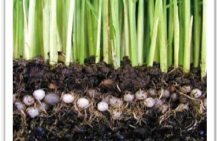 主力製品のコーティング肥料は成分溶出を調節でき、農業の省力化、環境への影響低減につながる、人にも作物にも環境にもやさしい肥料です。