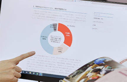 私たち日経リサーチは、日本経済新聞社グループの一員として、市場調査・世論調査などを手掛ける総合調査会社です。1970年の設立以来、50年以上にわたって信頼性の高いデータを提供してきました。国や地方公共団体からの依頼を受け、行政施策の資料となるデータの収集・分析にも携わります。国内だけでなく海外調査にも30年以上の実績を持ち、2017年にはタイに子会社を設立。世界をフィールドに事業展開を進めています。