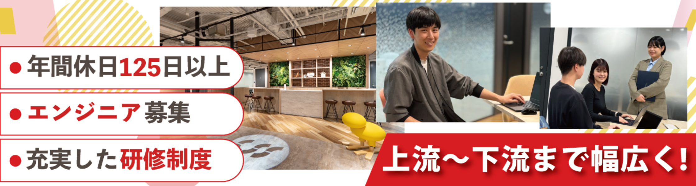 | 給与 | 大学院了:月給224,000円 大学卒:月給214,000円 ※上記は(株)シー・エス・エスに配属の場合となります ※上記は2025年4月入社の予定額となります ※固定残業代は含みません ※別途残業代は全額支給となります <(株)リライフ・ジャパンへ配属の場合> 大学院了:月給258,500円 大学卒:月給224,000円 ※20時間分の固定残業代(35,000円)を含みます |