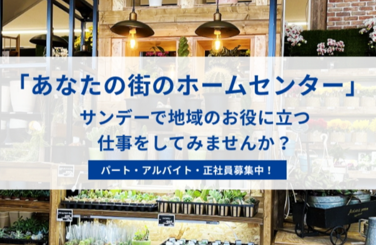 サンデーは東北を主要基盤にDIY用品・園芸用品を中心に住まいと暮らしをより快適にするサービスと商品を提供するホームセンターチェーンです。