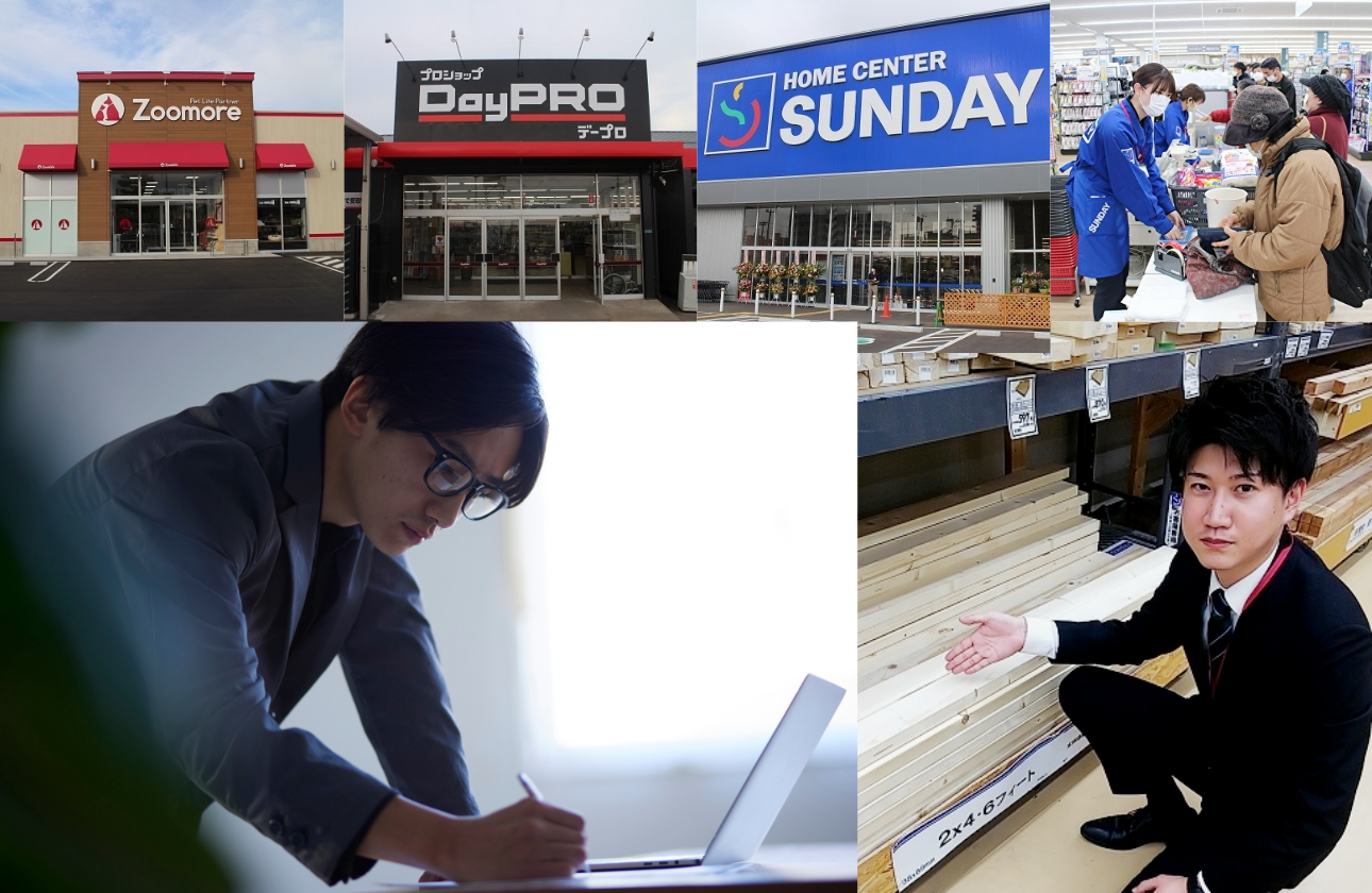 | 事業内容 | 【ホームセンター】 東北6県で115店舗展開。青森県内シェアNo1!地域の重要なインフラとして生活必需品からDIY、園芸用品に至るまで 身の回りの商品とサービスを365日提供しております。 ホームセンター他、スーパーセンター、SUN急便等、複数の事業とサービスを展開中。 |
