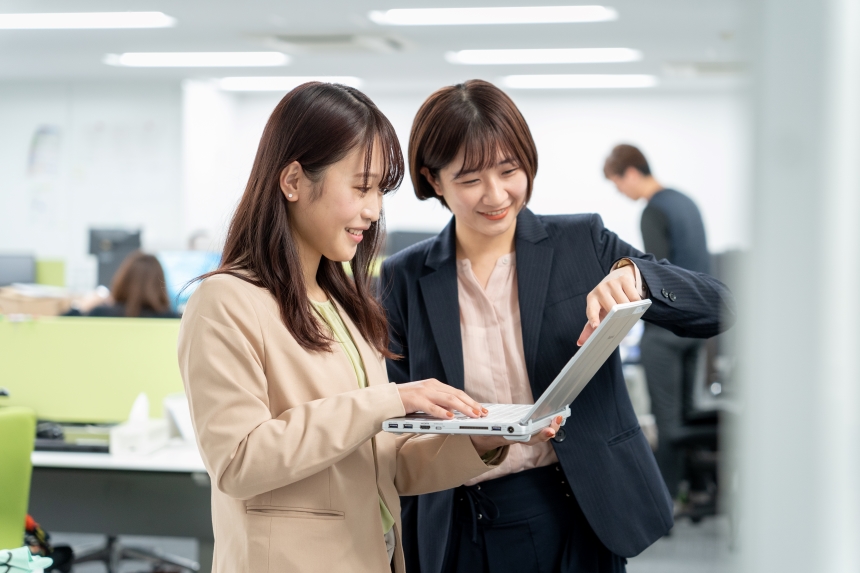 販売、営業業務を経て、人材コーディネーターや研修講師、採用担当にステップアップしていきます。