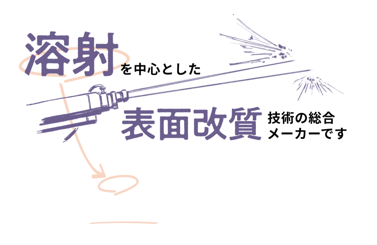 溶射は、産業界で幅広く利用されている表面改質技術です。目的に応じてその機能を最大限に発揮できるように調整した金属やセラミックスなどの溶射材料を、さまざまな熱源により溶融、軟化させた粒子を加工対象物表面に吹き付けます。吹き付けられた溶融粒子は瞬時に冷却されて固化し皮膜を形成します。
