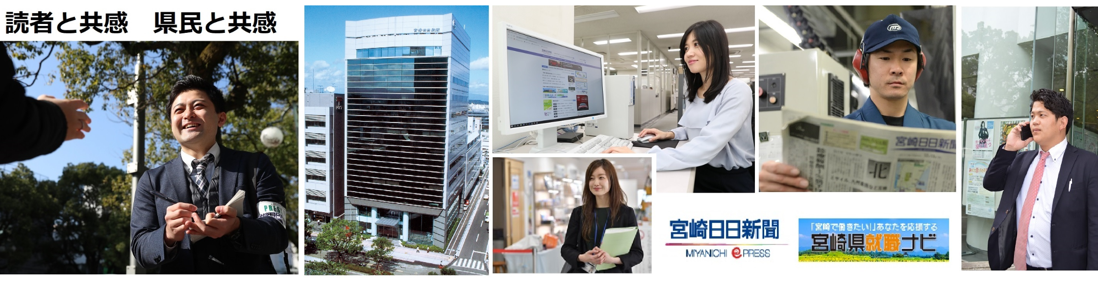 宮崎県内で最大部数の日刊紙「宮崎日日新聞」を発行。今年創刊85周年を迎え、長年「宮日(みやにち)」として県民に親しまれています。「読者と共感 県民と共感」をスローガンに、県内外14拠点の取材ネットワークで地域密着の報道を展開。デジタルにも力を入れ、総合メディア企業を目指します。「宮崎をもっと良くしたい」。そんな思いを胸に日々奮闘しています。