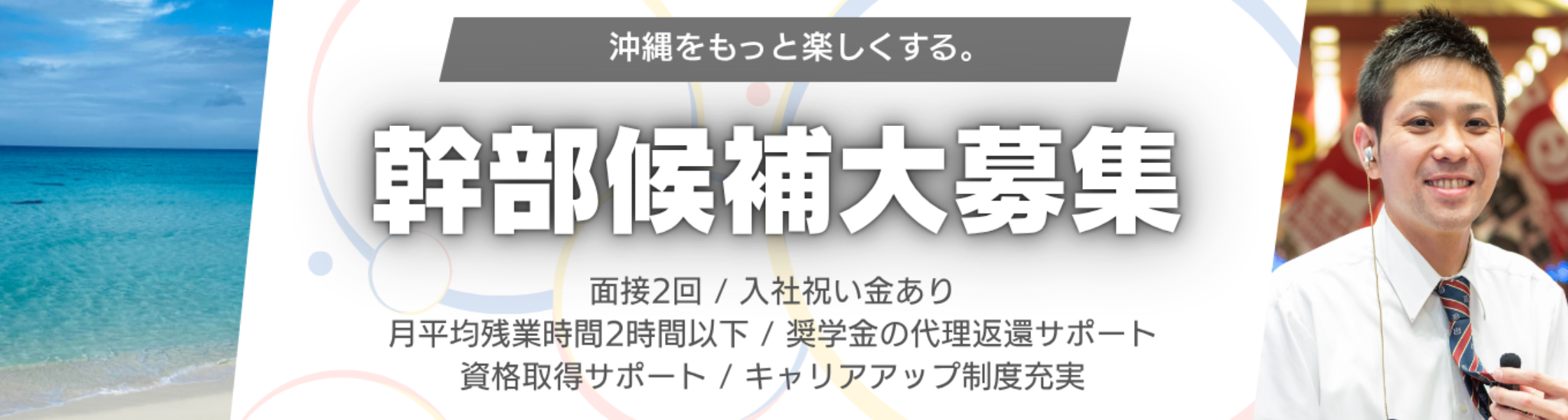 私たち株式会社ピータイムは、沖縄県内で15店舗の遊技場、4店舗のレストラン、不動産管理会社、2019年10月よりホテル事業、航空機エンジンリース事業を展開する多角経営の企業です。大事にしている考えは、遊技場で育った会社だからこそお客様に対して「楽しい」を提供すること。その為にはスタッフ1人1人が「楽しみながら」で仕事をする事で、お客様に「楽しい」を提供できると確信しています。その考えが多角経営の基礎となっています。事業領域とともに、その「楽しい」の輪を地域の皆様に広げていき、株式会社ピータイムに関わる全ての人に沖縄1「楽しい」を提供できる会社創りを目指しています。