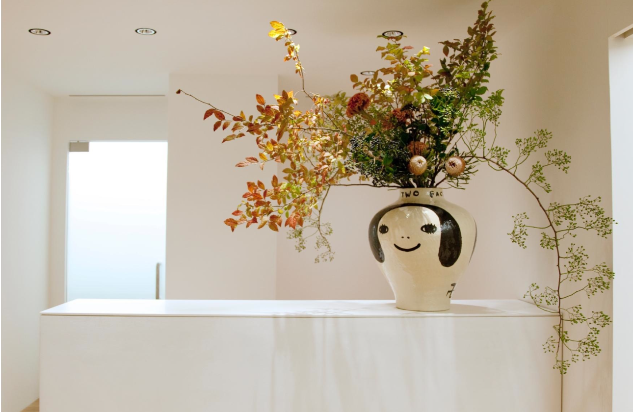 エントランスの花は各週ごとに変わります。目を惹くデザインの花瓶や素敵なアレンジの花が迎えてくれます。