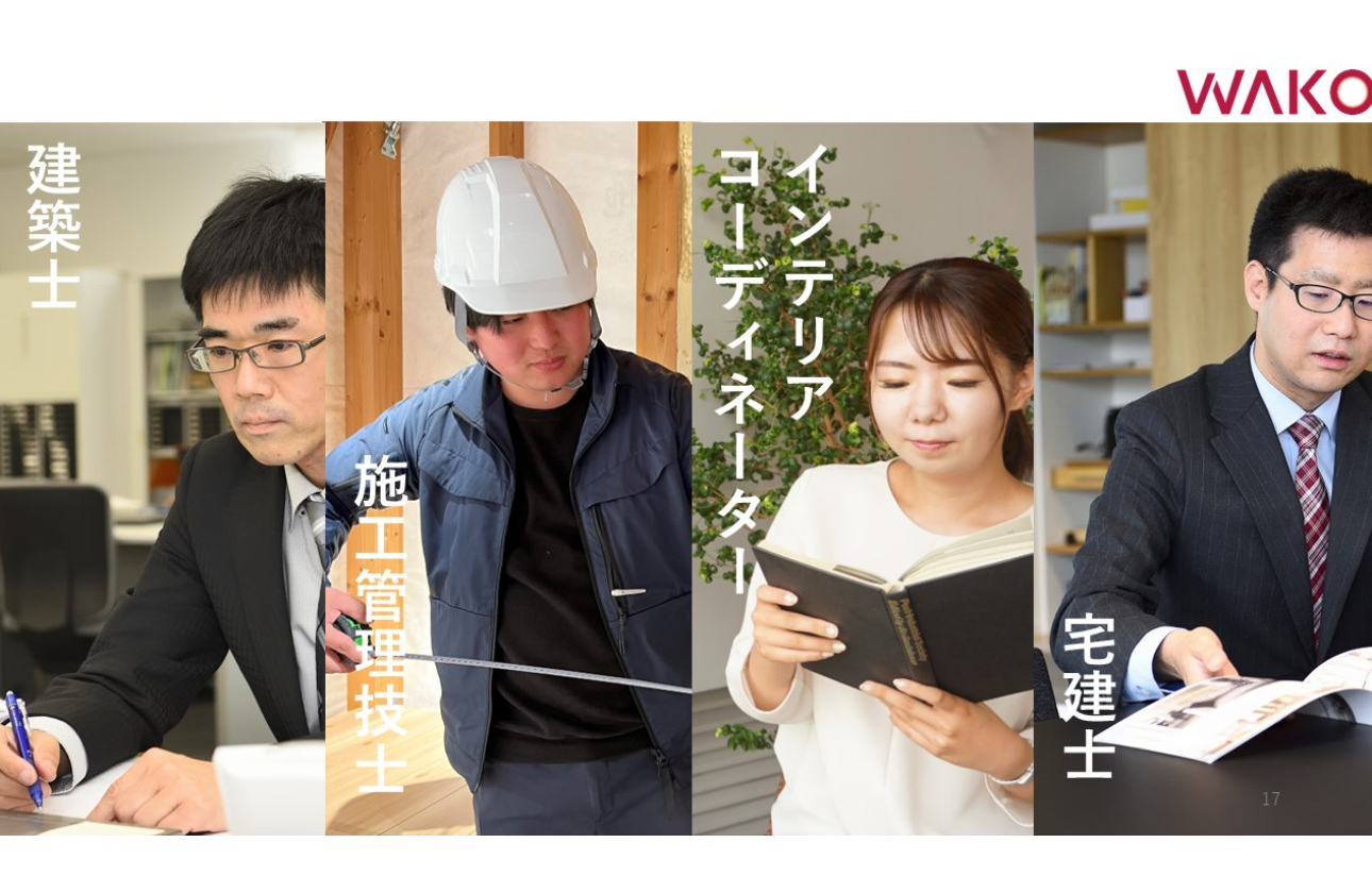 そして、永きに渡ってお客様との良好な関係を継続することによって、土地探しから始まり、設計、施工、営業、融資、趣味嗜好(家具・ドライフラワー)、アフターメンテナンス、リフォーム、Web関係など色々な仕事に携わることができます。
