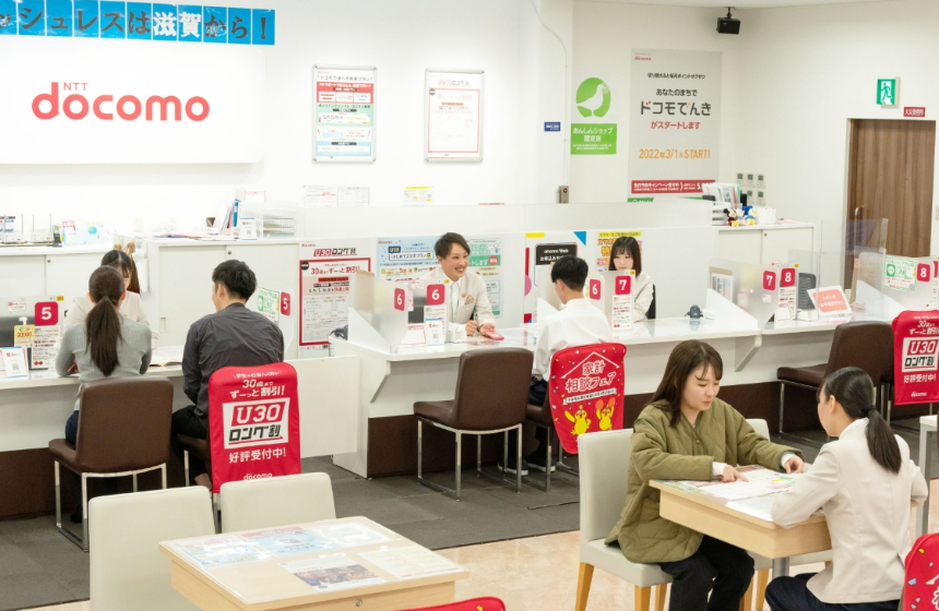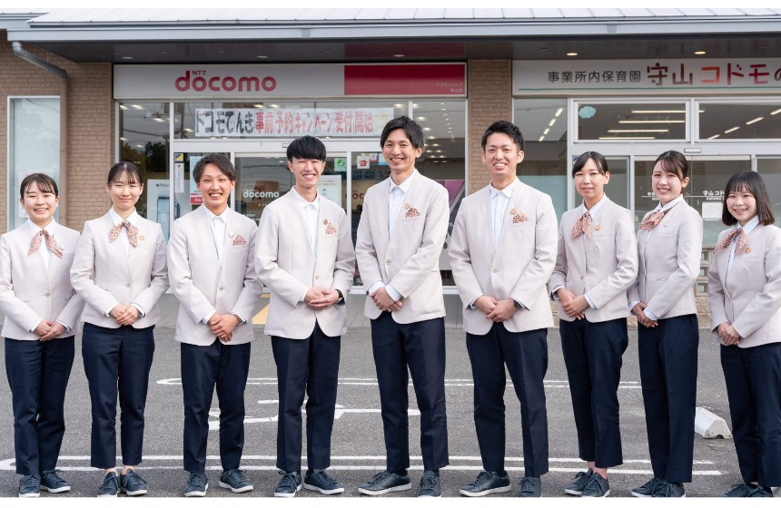 当社は滋賀6店舗、京都3店舗のドコモショップの運営や自動車電装品の事業を展開しています。