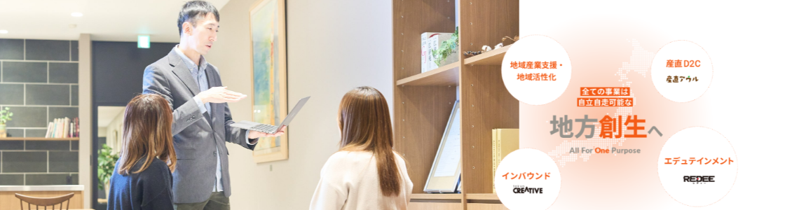 | 事業内容 | 地域産業支援・地域活性化事業、産直D2C事業、エデュテイメント事業、インバウンド事業(関連会社) |
