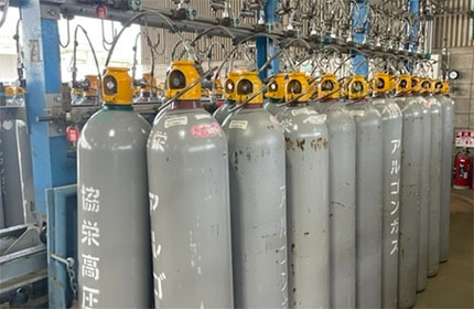 協栄興業は、大手自動車メーカーや自動車部品メーカー、パンの製造メーカー、医療機関等に対し、70年以上にわたって産業用・医療用ガス等を提供しています。東海3県(愛知・岐阜・三重)に地域密着し、TOPシェアを誇ります。