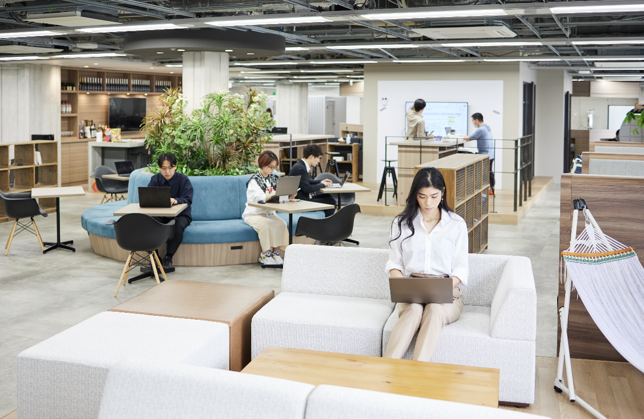 また、フリードリンクやマッサージチェアの設置、フリーアドレス制の導入により、社員それぞれが快適な環境で仕事に取り組めるようなオフィスづくりをしています。
