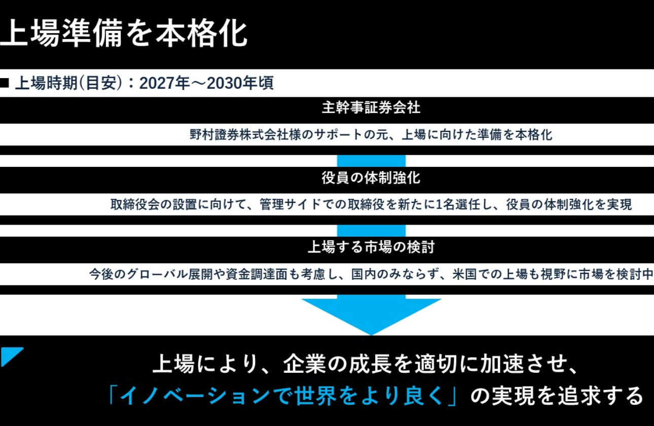 また、今後のGlobal Expansionも見据え、海外での上場も視野に入れております。