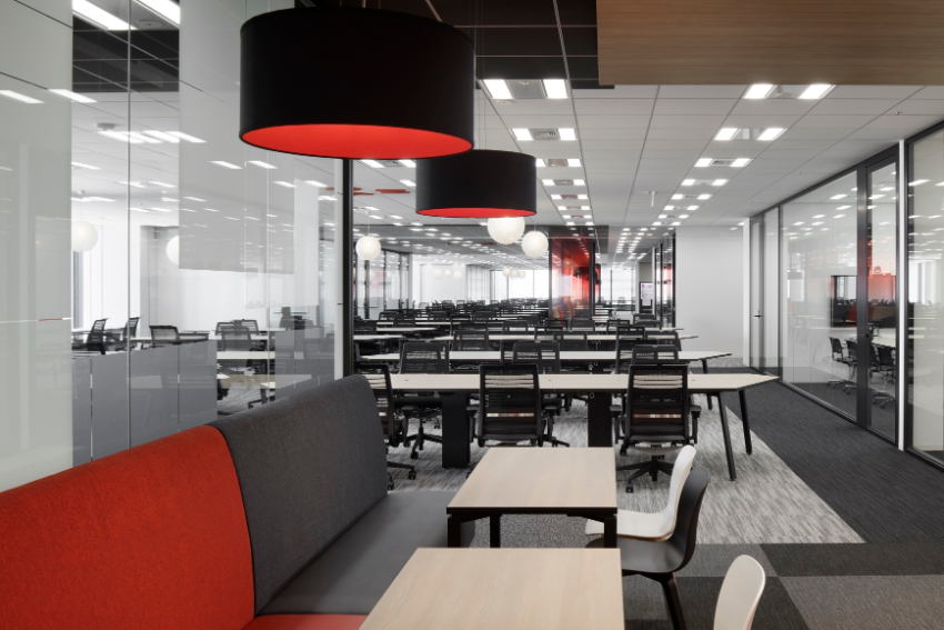 フリーアドレスの執務室。長期インターンの皆さんもこちらで就業されています。