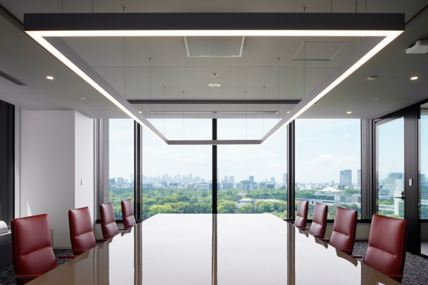 皇居の森を望む会議室。素晴らしい景観です。