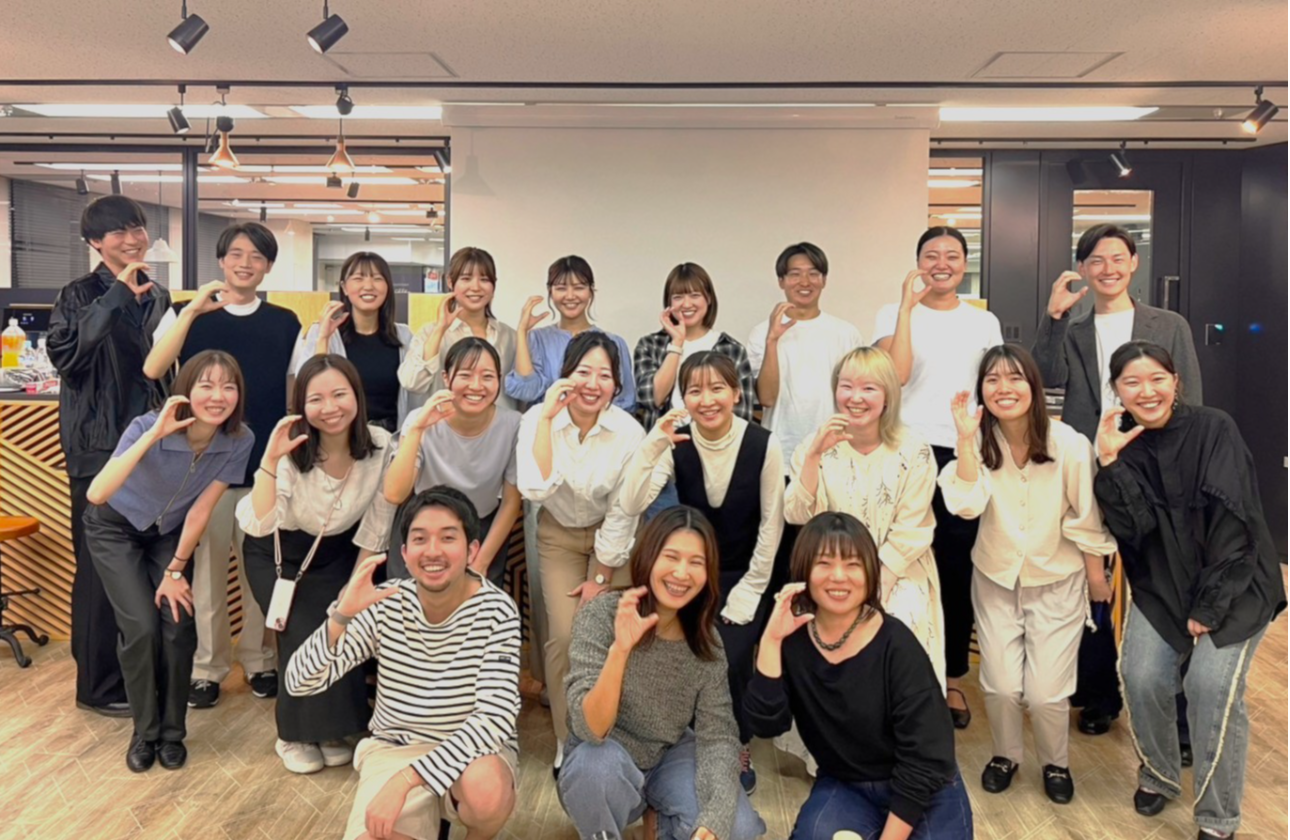 新卒入社4~5年目の先輩が、自身のキャリア観やこれまでの葛藤を新卒の後輩にシェアし、励まし合う・相談し合う会の集合写真です。