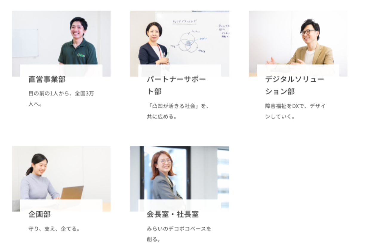 「凸凹が活きる社会を創る。」をビジョンに掲げ、児童から就労まで切れ目のない支援を、人生のステップに合わせて展開しています。