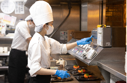 さわやかでは基本的に1つのテーブルを1人のホールスタッフが専任で担当。お客様との関わりを大切にするさわやかでは、たとえ非効率であったとしても、1組のお客様の来店から退店まで、担当のスタッフが気を配り対応します。それがさわやかを楽しみに来店してくださったお客様への最高のおもてなしになると信じているからです。