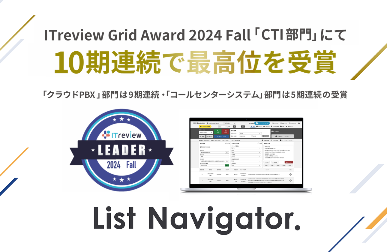 アウトバウンドコールシステム「lisnavi」は「ITreview Grid Award」CTIシステム部門で10期連続Leader受賞という実績を誇ります。