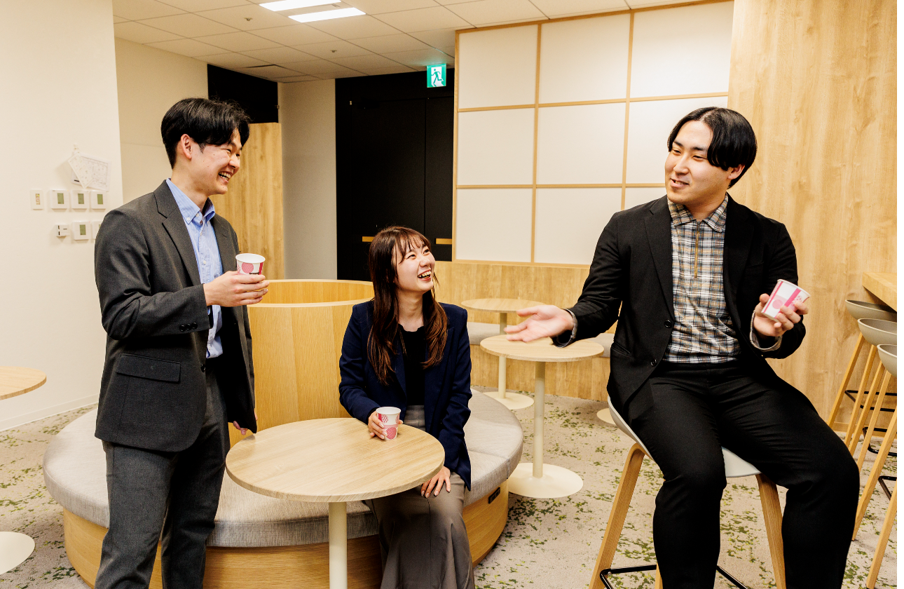 「こういうサービスってどうだろう?」「この福利厚生導入しない?」常に事業拡大やより良い会社づくりを目指す当社では、社員からも経営層からどんどんアイデアが生まれてきます。それらアイデアを調べることはもちろん、実現するために必要な要件整理、現状の課題抽出など、運用まで推し進めていくことも総合職の業務です。たとえば、中小企業として世界で初めて取得した人的資本経営の国際規格「ISO30414」。プロジェクトを担当したのは新卒2年目の社員です。年齢や社歴に関係なく、「やってみたい!」という意欲を重視しています。
