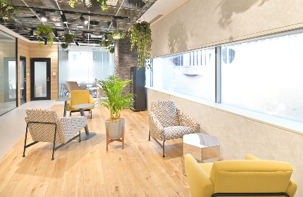 2023年3月新設の秋葉原センターは、カフェのような空間のリフレッシュスペースを完備。