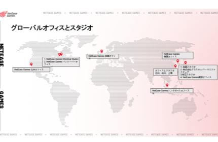 NetEase Games東京オフィスは、中国本社と連携して日本国内で事業を展開するための重要な成長拠点です。アートデザインやマーケティング、パブリッシング、ローカライズ、ユーザーリサーチ、QA、投資戦略及び業務提携などといった分野に対応しています。日本のお客様に喜ばれる作品を提供するという基本理念を大切にしながら、引き続き世界中のお客様により良いゲーム体験をお届けして参ります。