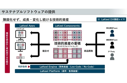 現在では、企業のDX化を支援する、クラウドを活用した日本初のデジタルビジネスプラットフォーム、LaKeel DXを中心に、